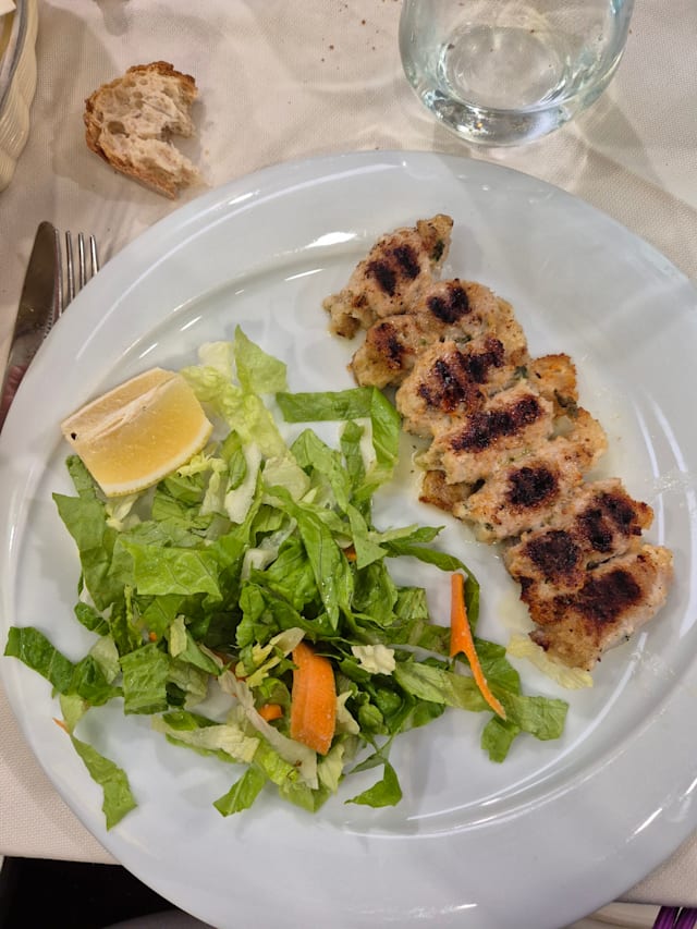 8.5/10The service was the right combination of attentive and discreet. Be aware, the plate of acciughe fritte as antipasto is big enough to be a meal for many people - they were very good, as were the polpetti di sarde. The pesce di spada grilled was good, in a tomato based sauce, very tasty. The only slight issue in the meal was that the rigatoni were undercooked, not at al dente level. The meal was fairly priced.
