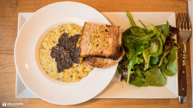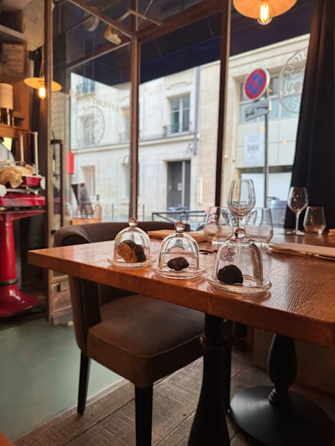 10/10We loved the personal touch that we received from the moment we arrived! We were explained the different type of truffles and it all was an amazing experience! The food was amazing! We tried the mozarella and truffles, the risotto and the bellota with polenta and truffles! Everything was outstanding! We loved our experience and we will definitely return when we come back to Paris next time!! Highly recommended!