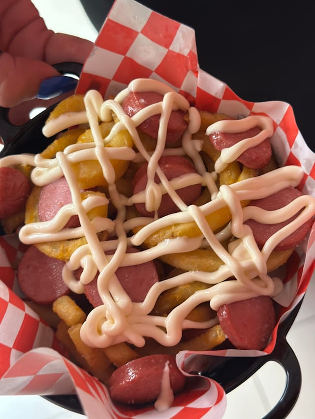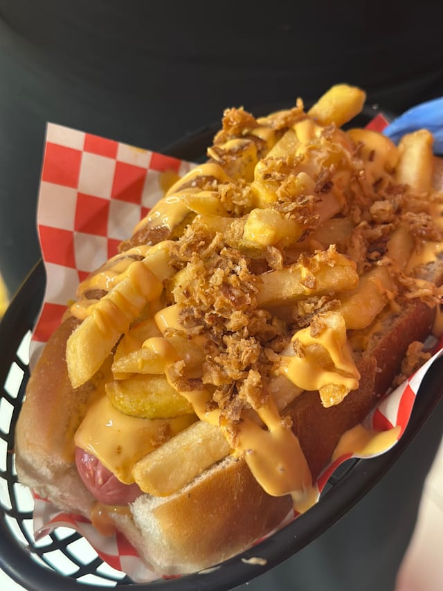 Telaio robusto, anima grigliata. Una costruzione da banco sporco: grasso, sapore e potenza. Salsiccia, provola, peperoni, patatine fritte, maionese
