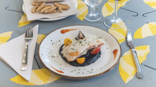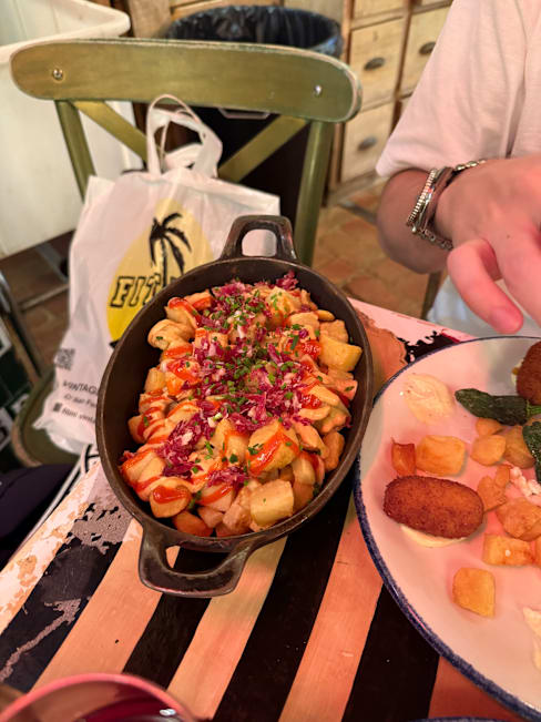 9/10Most of the reviews we read were really good and we agree. We shared a grilled goats cheese topped with Sevilla marmalade, mains of grilled artichoke and vegetables, and braised pork cheeks (delicious). All really tasty and big portions
