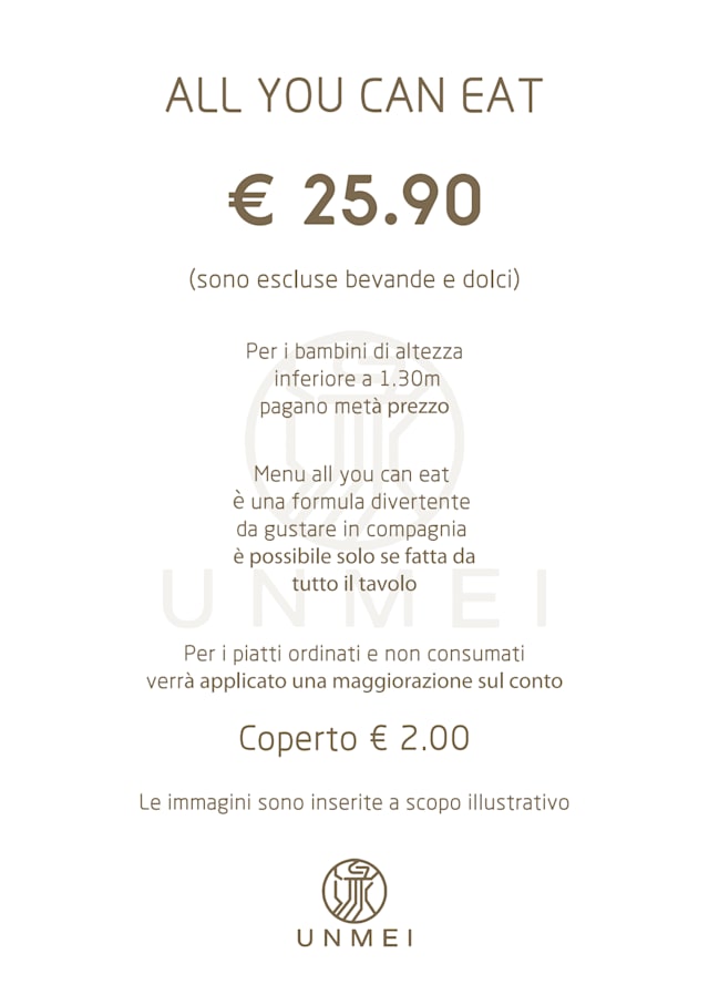 all you can eat no sconto€27.9 per guest