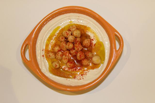 - Con aove, garbanzos, pimentón dulce y crudités/tostas.