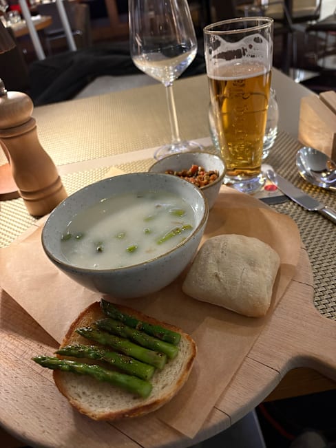9/10Asparagus soup came with asparagus toasty and olive tapenade. Burger worked well with crispy bacon and beemster cheese. Chocolate dessert contained four moving parts. Lots of different Dutch beers on draught including some seasonal specials.