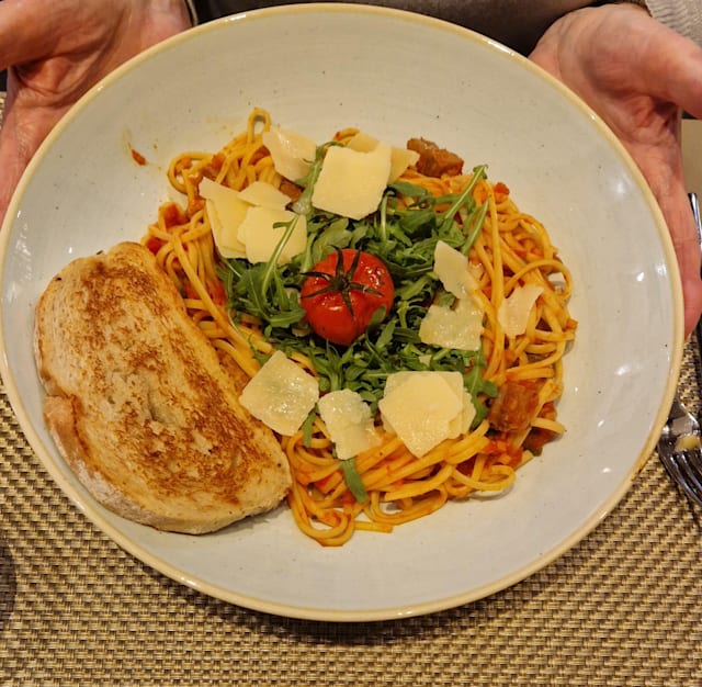 5.5/10Pasta was not tastful, grilled vegetables were. Waitress had no knowledge on the products she was selling