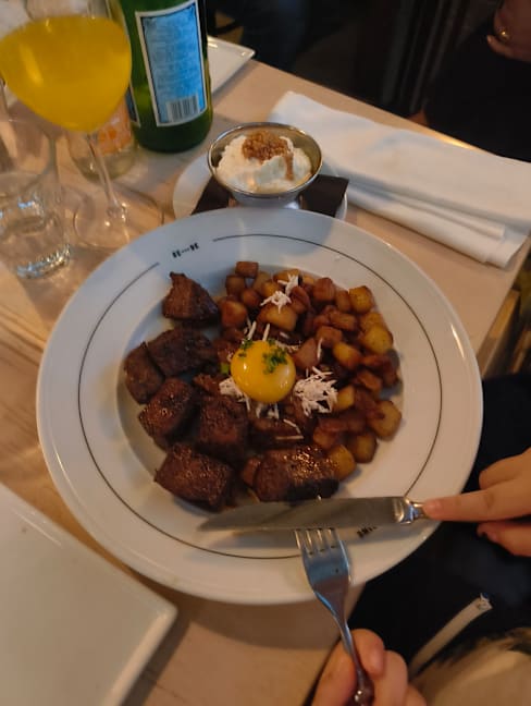 10/10Very pleasant atmosphere, decor, and lighting. Easy access via the red and green metro lines. The service was excellent, and the waiters were very attentive. The food was delicious. I had the raw steak, which was perfect. The wine and dessert were excellent. I highly recommend it.