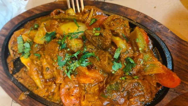 Mutton namkeen karahi is a mildly spiced, salty mutton curry.