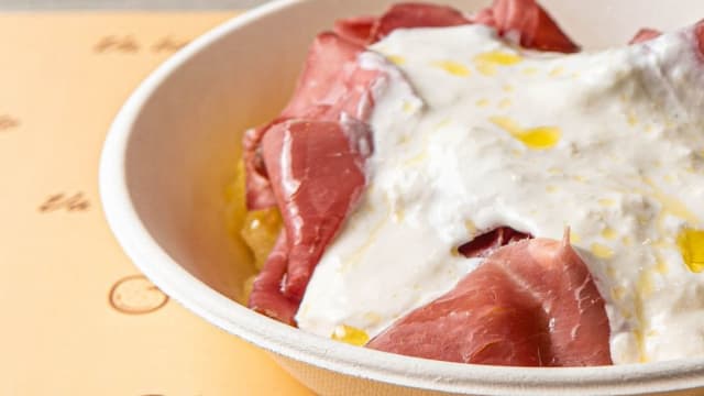 Cuore di burrata, prosciutto crudo e olive taggiasche