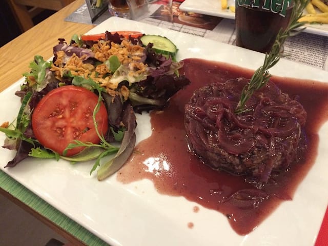Trilogie de viandes – pavé de bœuf, bavette à l’échalote, travers de porc