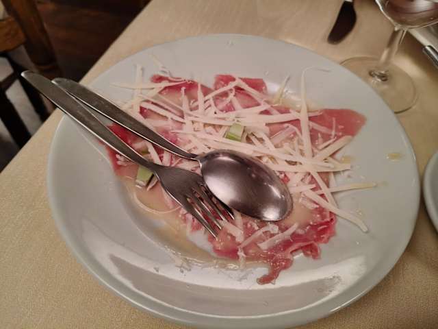 - Il carpaccio di vitello con salsa alla senape, sedano e parmigiano