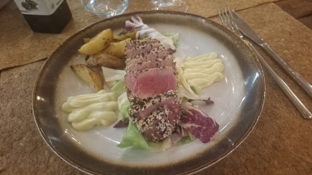 10/10My friend and I tried this restaurant taking advantage of The Fork festival given the restaurant level is a little beyond my usual reach. We had Tuna tartare as a starter and black ravioli filled with grouper and a fish and vegetable fry. We enjoyed all the food, in particular the ravioli. As a dessert we had a cheesecake and a chocolate cake with a hot core. We enjoyed the latter more. The service was warm and friendly, Chiara, the waitress, seemed genuinely committed to her job: smiling, fresh, human and not overly formal. The cook came out to us to explain to us he had already split our food in halves and served on two dishes to save us from having to do it on the table. We enjoyed our evening a lot!