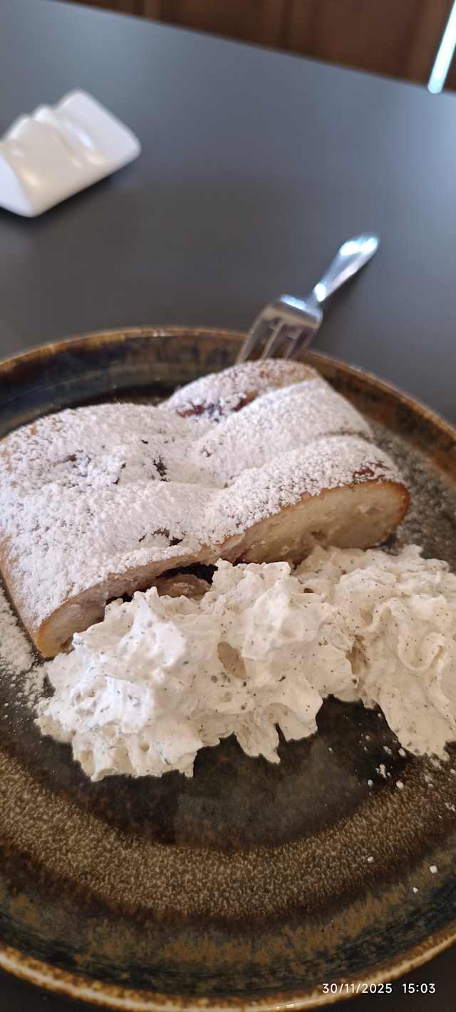 - Torta tradizionale ferrarese accompagnata da crema al gianduja prodotta da noi ed un ricciolo di panna montata fresca