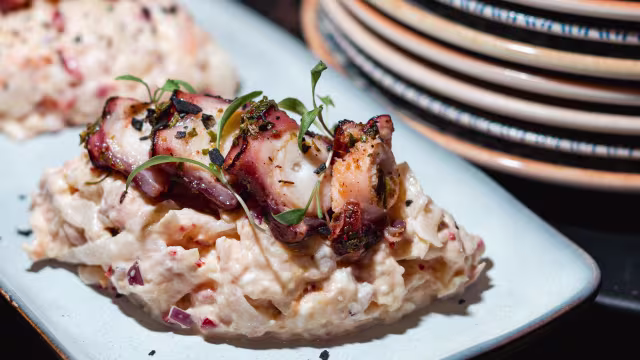 - Ensaladilla con pulpo asado y chimichurry argentino.