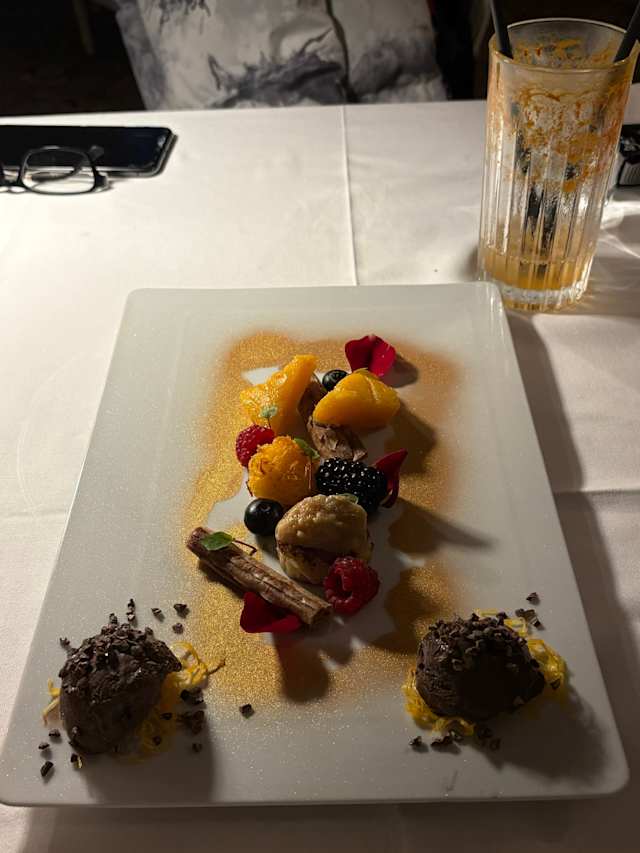 6/10It’s a beautiful place with an impressive setting, and the service was up to a high standard. However, the food was very disappointing. The starter blue lobster was plain and dry, and my fish was so oversalted that I couldn’t finish it, with fairly plain sides to match. My mom’s cod was served with chickpeas (the two don’t go well together) and simply wasn’t tasty at all. My dad’s lamb was chewy and full of bones. We skipped dessert because the overall experience was already disappointing. We were celebrating our parents’ anniversary that evening and left feeling hungry. Portions being small isn’t an issue when the flavors shine, but in this case the dishes were bland and not up to the standard of the establishment. The presentation of the dishes was excellent, which is what initially attracted us to visit the restaurant.