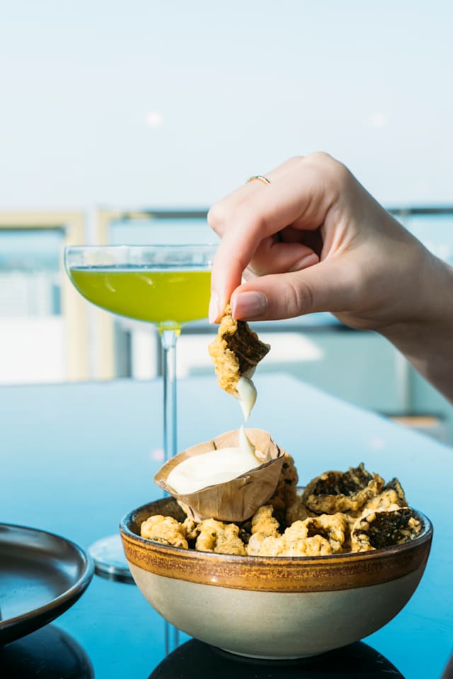 Feel like you´re taking part in a japanese tea ceremony with this elegant and lightly sweet drink. Floral sake, matcha and pistachio will cleanse your taste buds.