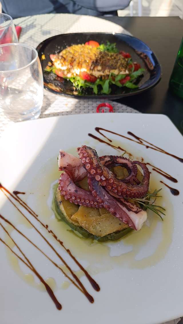 Polpo arrostito su letto di patate
