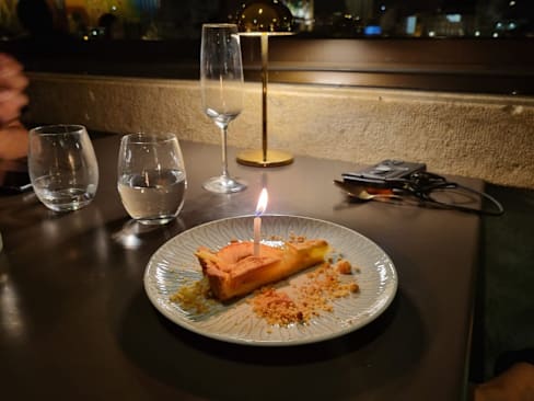 8/10Nice food, appreciated the live cooking, bread is a big no, nice view on the city