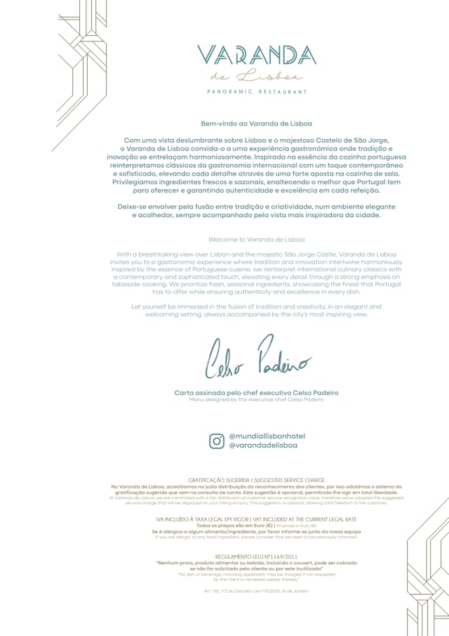 Dear Giovanna Martone, Thank you very much for your kind and generous comment! We are truly delighted to know that your experience at our restaurant was so positive. We work with dedication to offer not only high-quality cuisine but also a welcoming atmosphere and attentive service, and it is truly rewarding to know that we achieved that goal. We look forward to welcoming you back soon to continue this shared gastronomic journey. See you soon! Kind regards, The Varanda de Lisboa Team