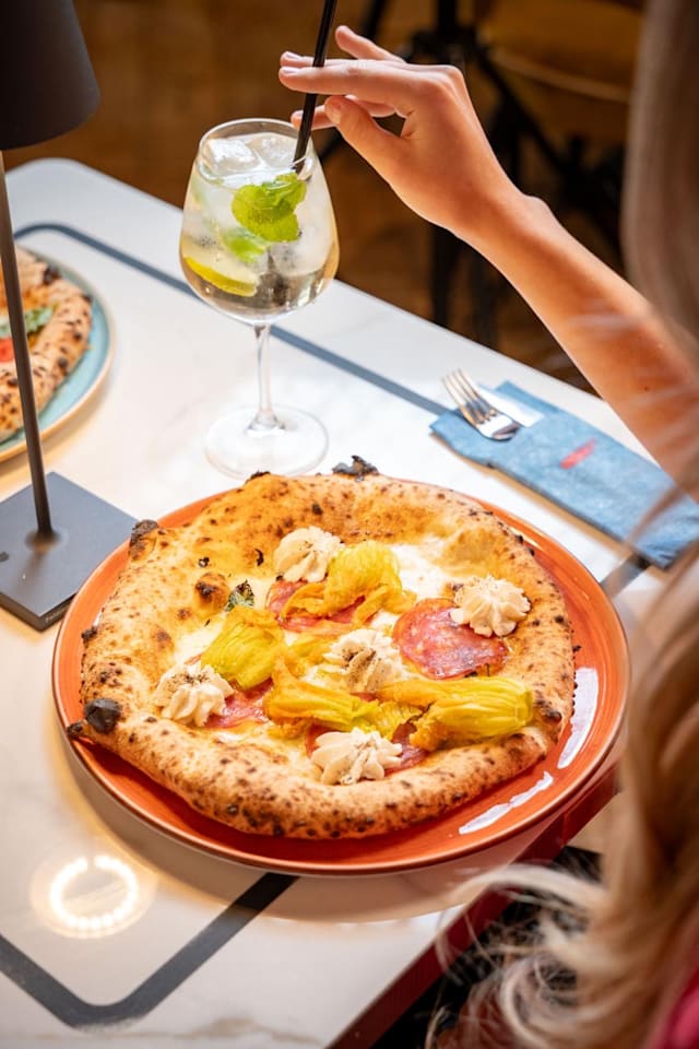 - Ricotta di fuscella, salame napoletano, provola di agerola, pepe macinato fresco, basilico e olio EVO, pomodoro san marzano all'esterno.