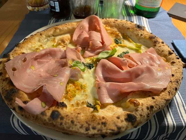 - Fior di latte dei monti lattari, prosciutto crudo di parma 24 mesi, burratina pugliese, pistacchi di bronte, pomodorini pachino DOC, basilico e olio EVO