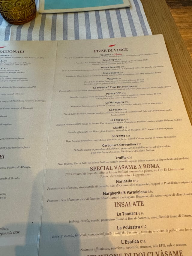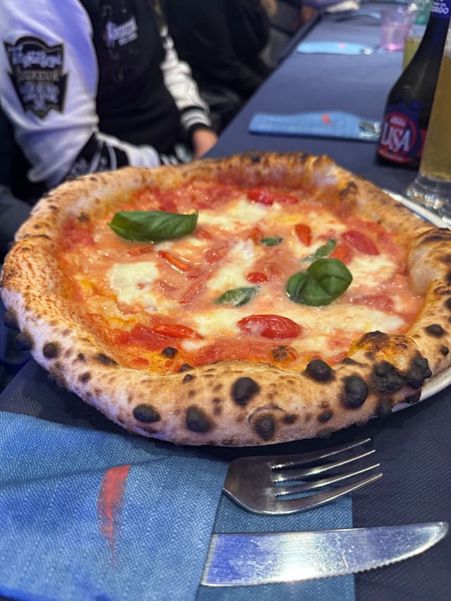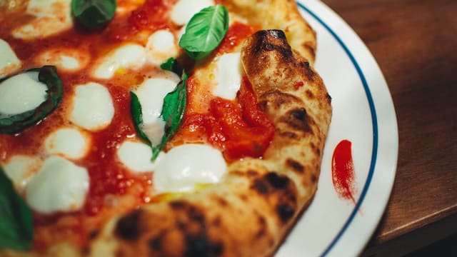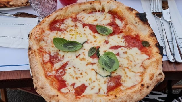 - Pomodoro san marzano dop, fior di latte dei monti lattari, basilico di albenga, grana padano, olio evo.