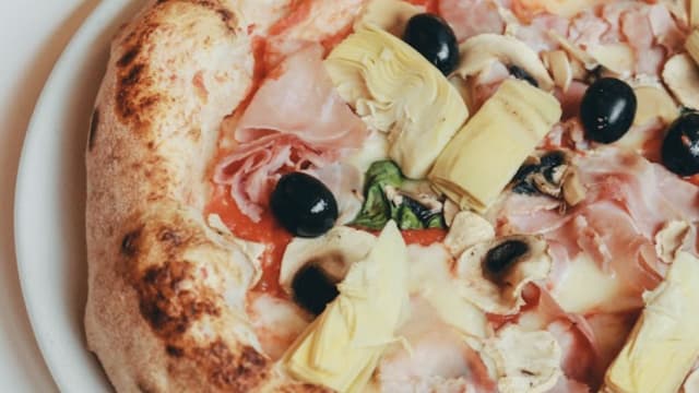 Jambon d’épaule, champignons frais, artichauts, olives noires