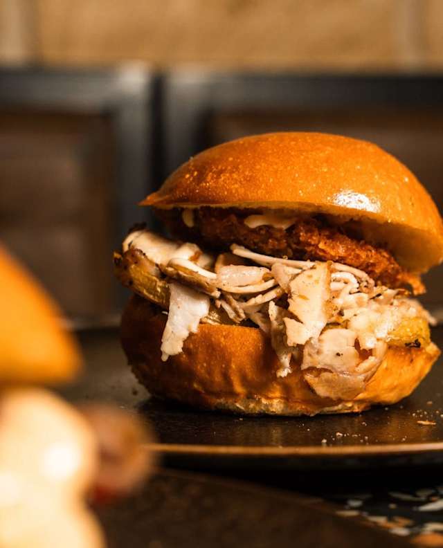 Pane bianco, pollo, pomodoro cuore di bue, iceberg, uovo occhio di bue, maionese homemade, bacon