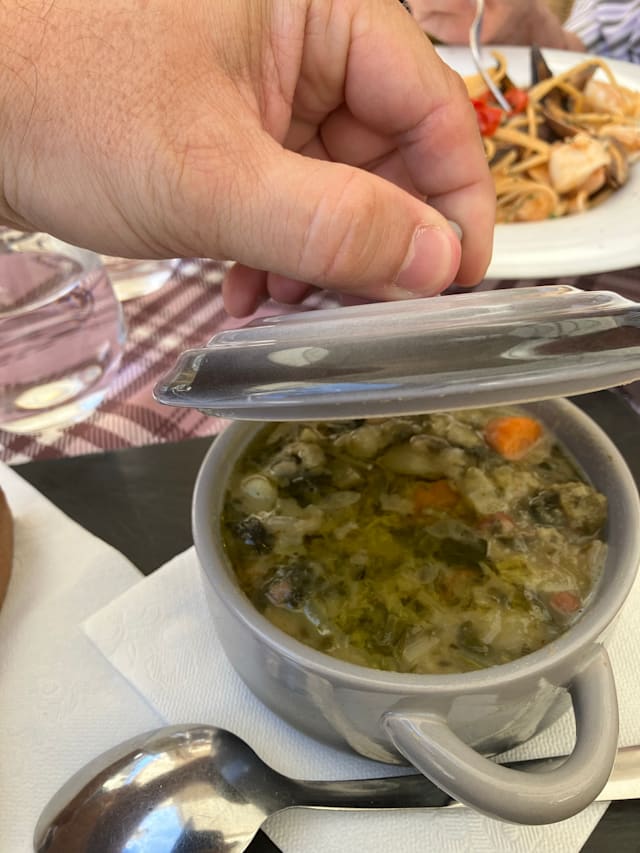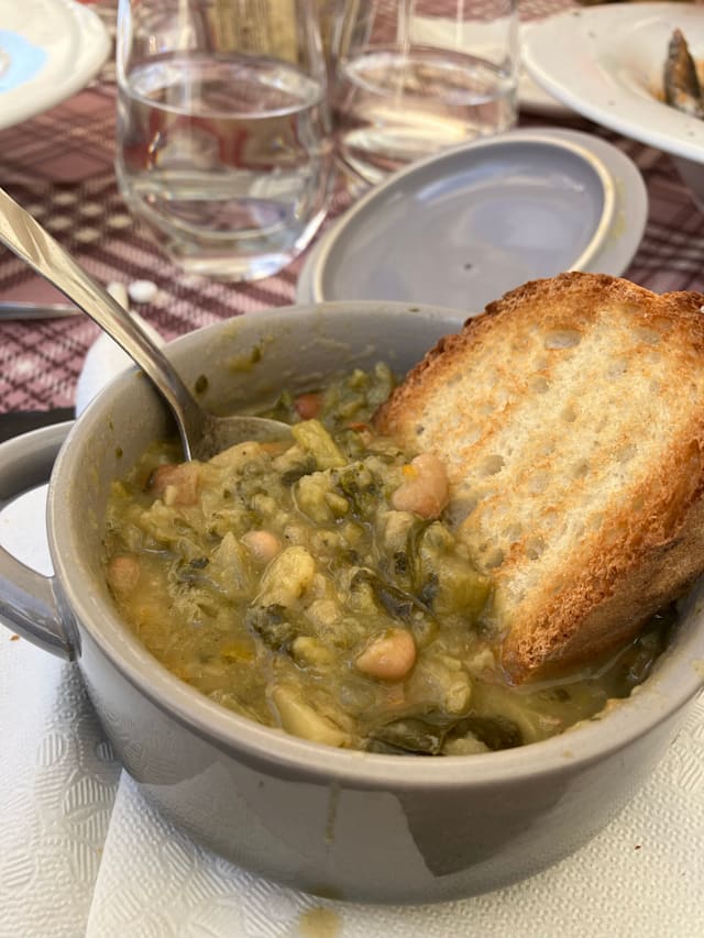 Zuppa tipica toscana con verdure miste, cavolo nero, fagioli e pane tostato con olio extra-vergine.