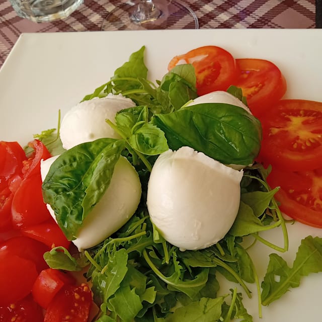 Pomodoro, mozzarella di bufala, rucola e prosciutto crudo dop