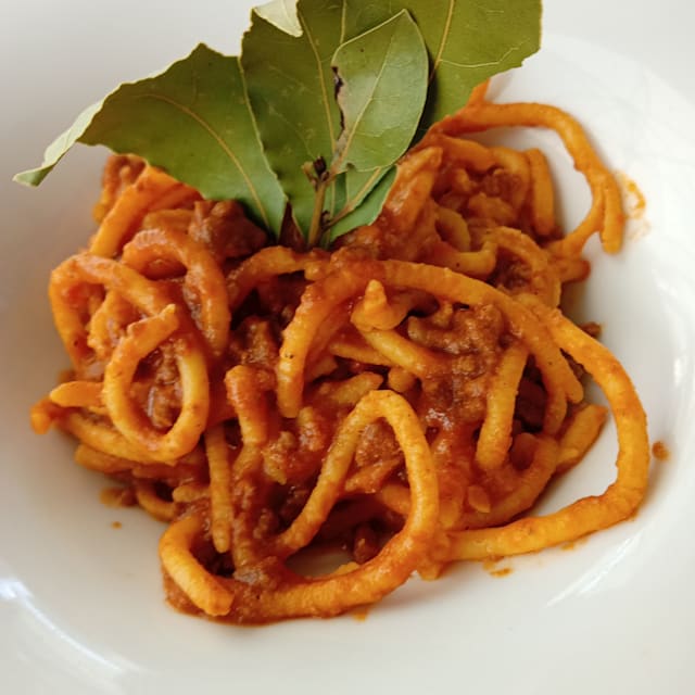 Pasta fresca (tipo spaghettone) con ragù di vitello