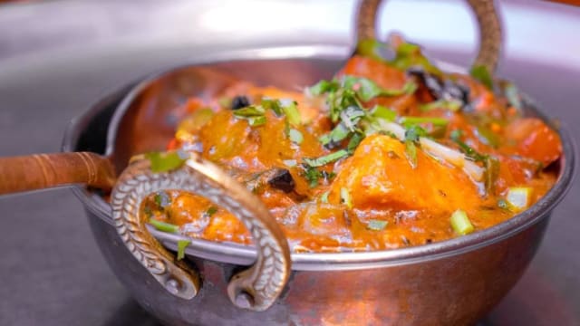 Paneer al curry servit amb salsa kohlapuri (especialitat de veg world)