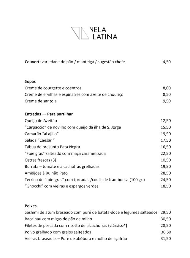 10/10There are only a few places like Vela Latina. Every time I visit Lisbon, I make sure I have at least one meal here. The location, the quality of service and the quality of the menu are exemplary.