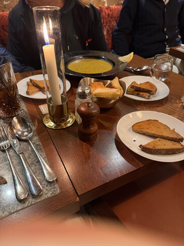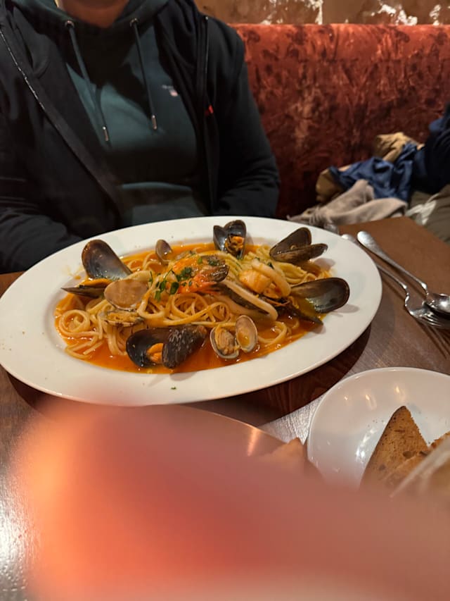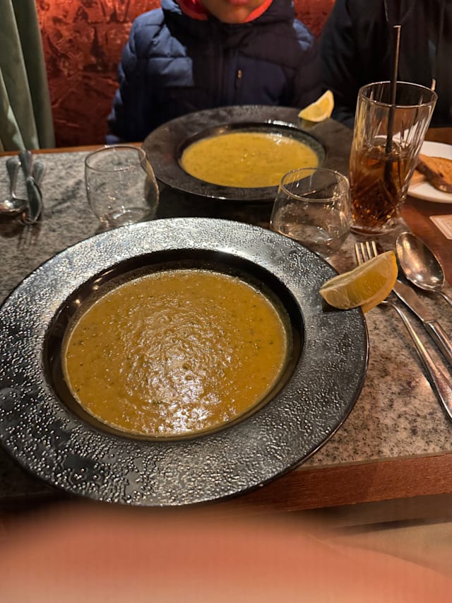 4/10We went to a restaurant for the New Year's menu. The food was decent, but not worth the price. What I especially have to criticize is the quality of the service. Our order was taken three times by different waiters, and only one of them spoke English. When the waiters brought wine to the couple at the next table, they tasted it and then it turned out the waiter had mixed up the tables. He then took the glasses and wanted to serve them to us. While waiting for the food, we weren’t given water, and the waiters kept bringing the wrong orders. In the end, even the bill didn’t match what we had actually ordered. The atmosphere could have been wonderful if not for the music being as loud as in a nightclub. In summary, I do not recommend this restaurant.
