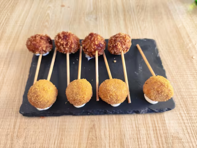 - Café, tostada de tomate pincho de tortilla de patata, jamón ibérico, palmerita de lotus уу zumo natural de naranja
