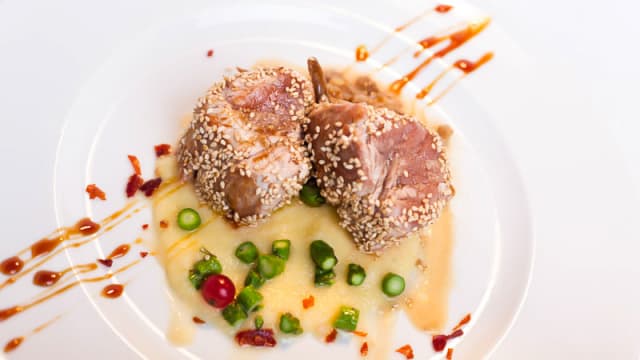 10/10Beautiful food in lovely tree filled courtyard to avoid the heat. Pulled pork was delicious as was the octopus and ensalada. House wine good quality. Highly recommended