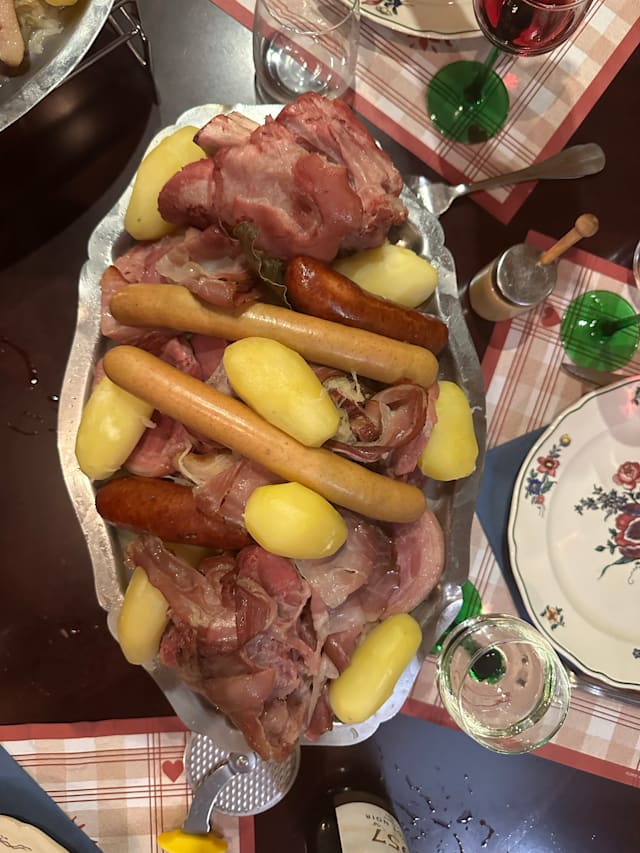 10/10Extremely authentic Alsatian food. Tarte Flambé made perfectly in a wood oven. Choucroute excellent. Solid Alsatian wines with a solid selection in particular the Riesling