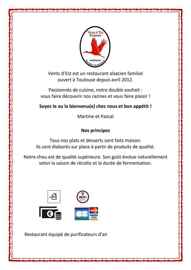 9/10Very good service! the personnel are very nice and welcoming. East France food is very good and the wine is great. I'm recommending this restaurant to who wish an authentic experience.