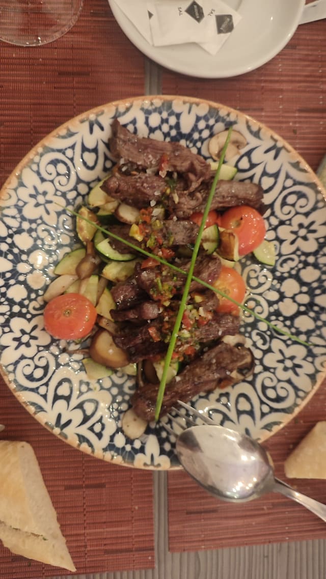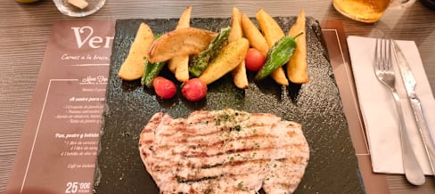 7.5/10I expected a bit more judging by the location. The grilled meats - whether pork or beef - were very good. The beef steak was even excellent. The side dishes were poor - the vegetables were of different degrees of doneness and some were cold. Dessert was so-so. The restaurant does not encourage you to spend a long time there.