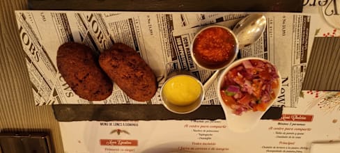 10/10Tried Ecuadorian tapas and really enjoyed the selection Corviche, Yuca Frita and Area de pollo al curry Sauces: Spicy sauce, cheese sauce, cilantro sauce, curry cream Tarta casera de mango y maracuýa