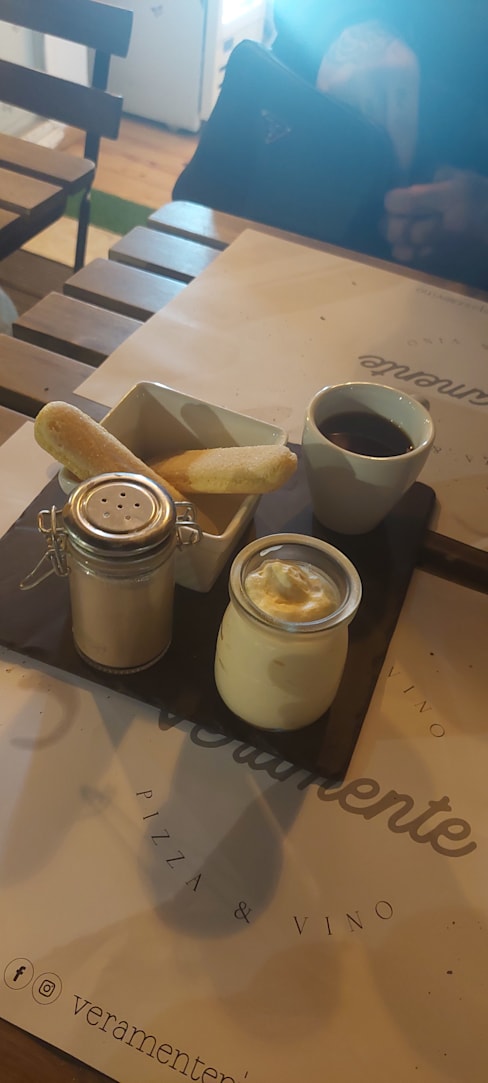 10/10Great experience! Small restaurant with the possibility of sitting outside on a patio serving great pizzas and diy tiramisu.