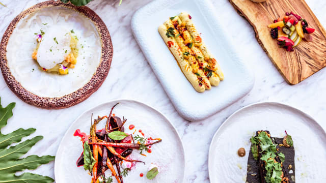 Explore the chef's selection menus with diverse dishes at fixed prices. Some are bookable via TheFork, while others are available onsite.