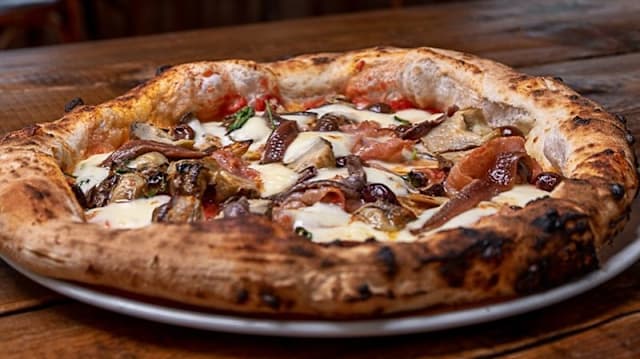 Mozzarella fior di latte, pomodoro, olive, capperi, acciughe del cantabrico, origano