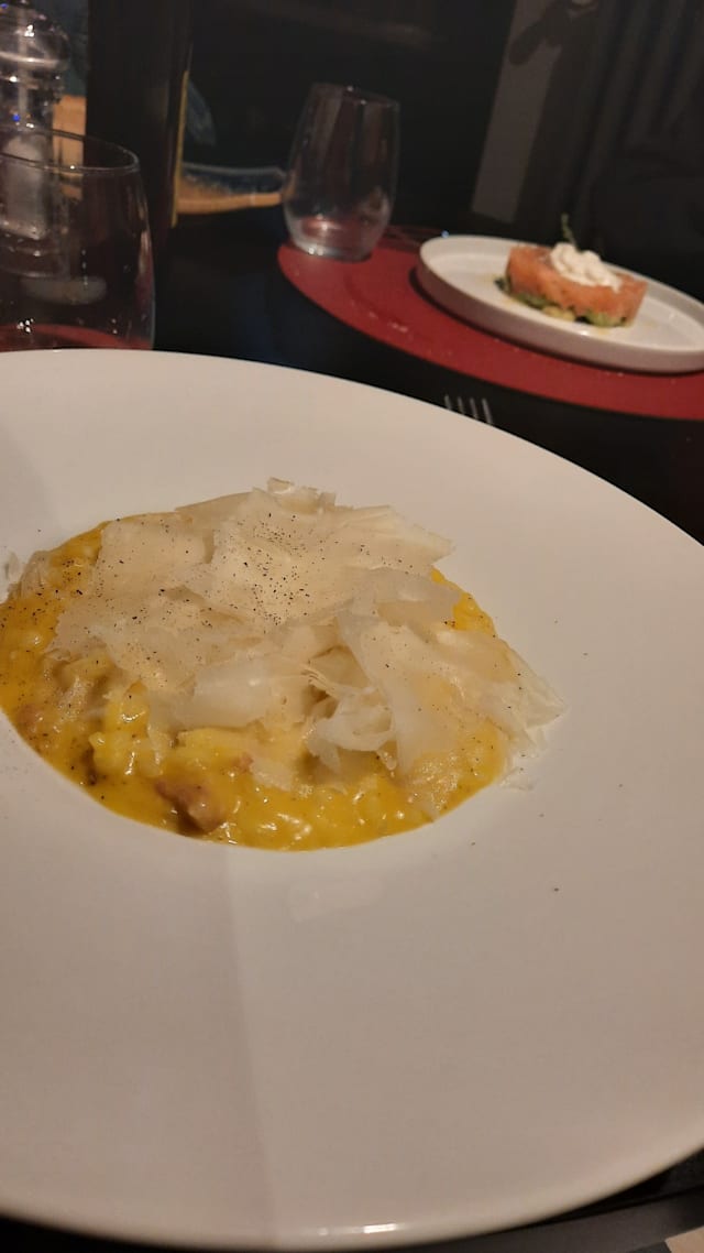 8.5/10The segundos of risotto and paccheta were excellent. The bread was unfortunately industrial. The app of tempura shrimp with teriyaki sauce good.excellent service. The female vocalist muzak was too loud and monotonous. The overall red decor with female figurative visual art themes a bit boring. The wine is overpriced at 9 euro a glass. But with the 50% discount the value was good