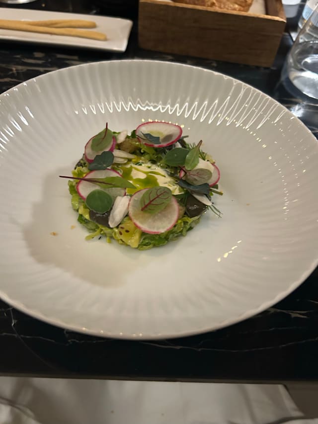 6/10Chaotic and disorganised service. Good flavour on most of the dishes but having a small cos lettuce as the non meat option for the main felt like a cheat. Expected fish or seafood of some sort.