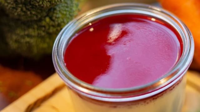 Cheesecake à la vanille, crumble vanille, coulis de fruit rouge