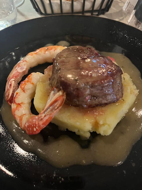 5.5/10Ridiculously overpriced €180 a kilo for lobster. Price of Florentine steak double everywhere else. Potato undercooked despite request second time round still undercooked. So in summary the food quality is not worth the price . They rely on the view to carry them through.