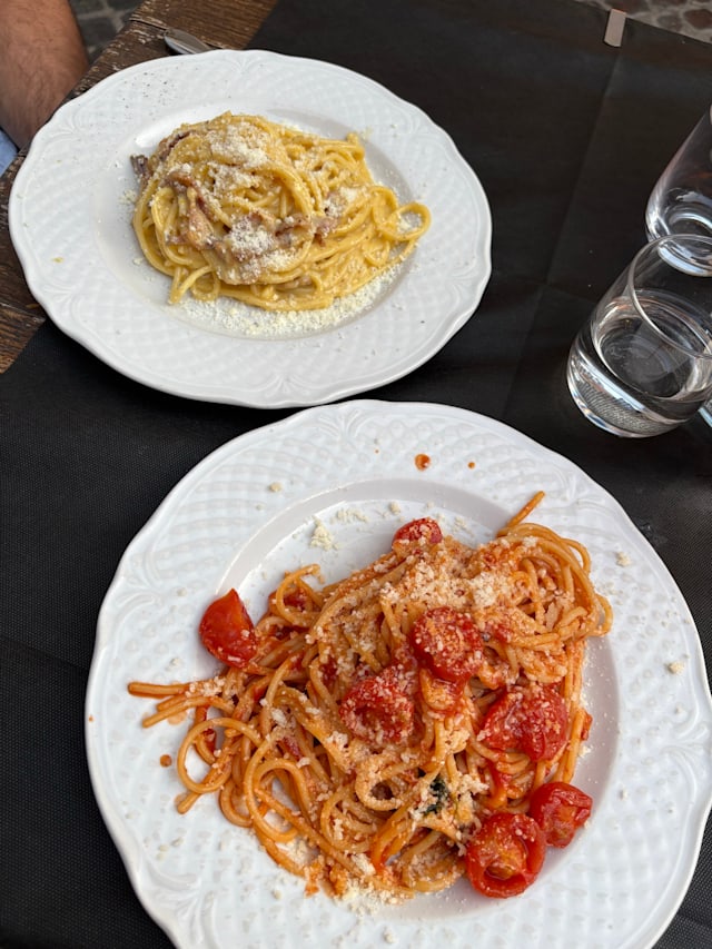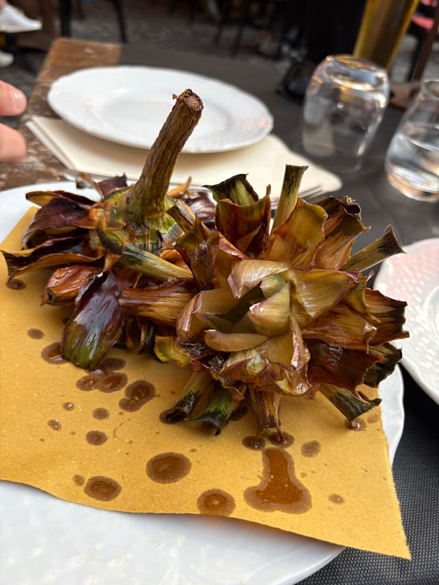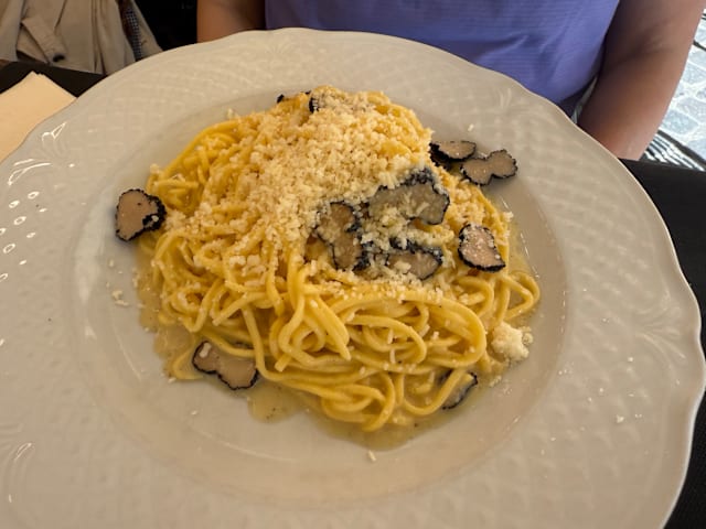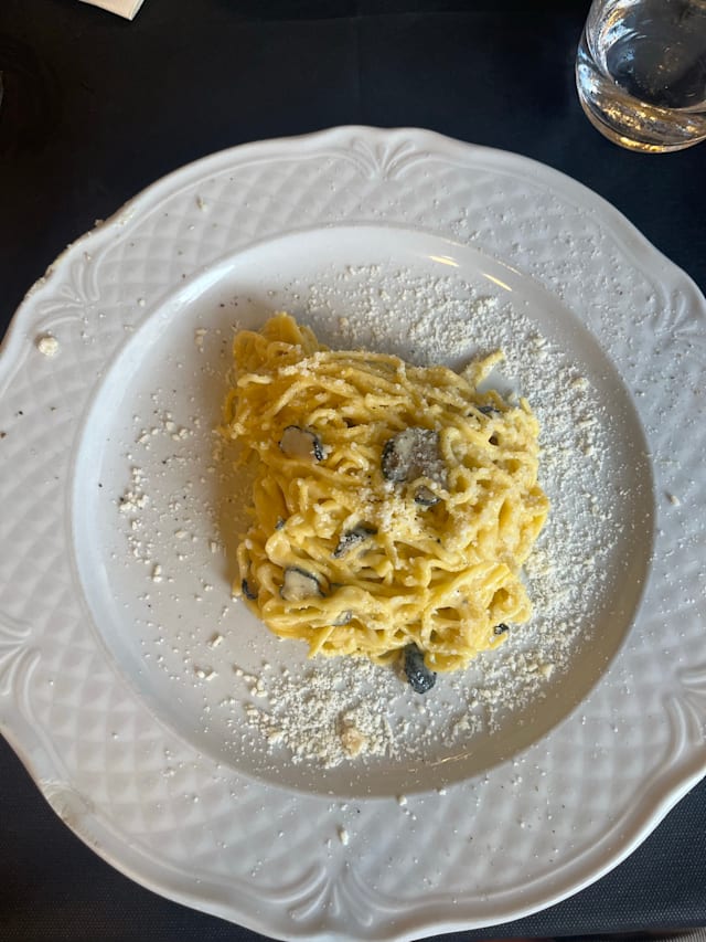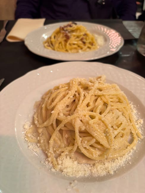 8/10Gets a young, lively crowd. Outside seating near one of Rome's famous ever-flowing fountains of fresh water. Spaghetti with clams, Spaghetti with tomato sauce, well-made, worth the visit. Young staff, knowledgable. Large wine list -- Lazio's own white Bellone wine, derives from ancient Rome, with just a touch of sweetness and spice. A varietal worth trying -- vintage 2021. Two house made desserts -- cheesecake and tiramisù -- go well with caffè macchiato. Its reputation will grow. Reserve.