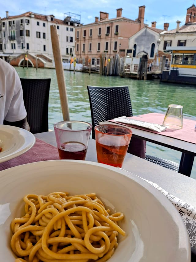 7/10The food was delicious and of high quality. The spaghetti was clearly artisanal. The restaurant is also located in a peaceful area by the canal. Unfortunately, a big disappointment was the unexpected charges, which should not be present if the restaurant considers itself a high-quality and reputable place. -White bread basket €4 (we didn’t even touch it) - €2.50 service charge per person I recommend incorporating these costs directly into the menu prices. People know that Venice is an expensive place, so the prices won't deter customers, but these "sneaky" extra charges leave a bad aftertaste.