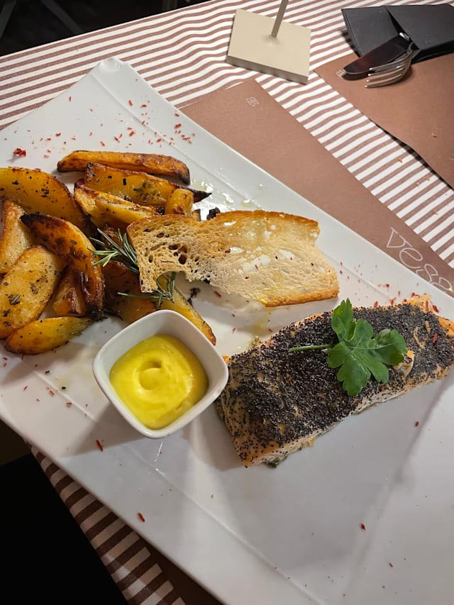 8/10Lunch was good...a very big and filling salad with salmon and boiled egg and vegetables. Good value for a sit down meal with a nice setting.