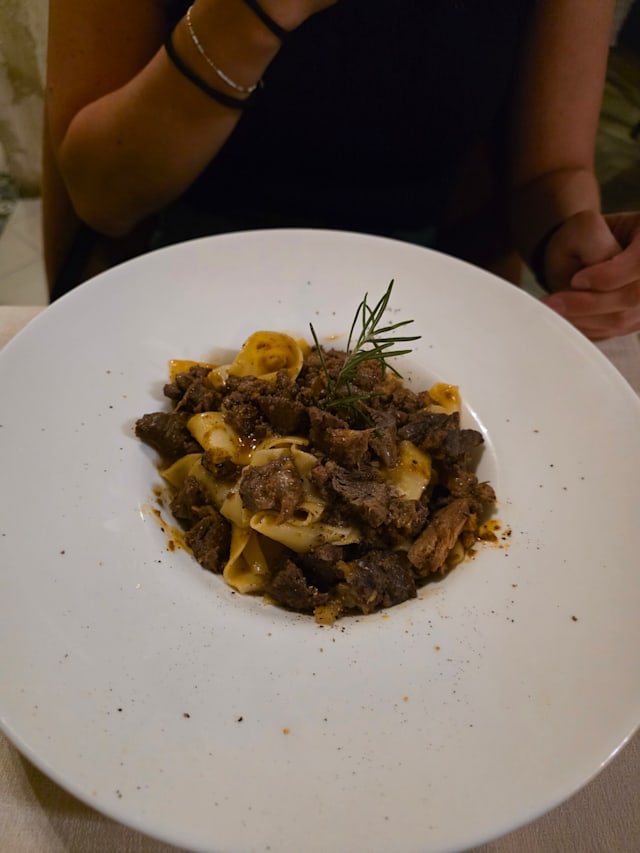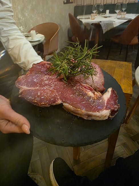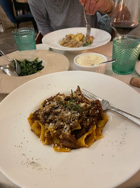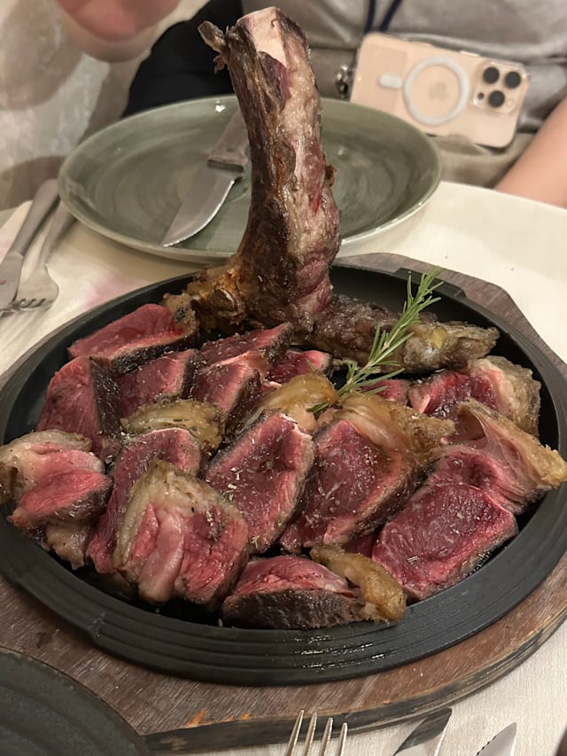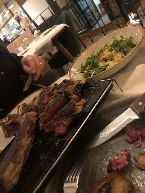 10/10We were looking for a Florentine steak and found this amazing restaurant in a last minute search. Drinks started off the evening and then the Chef sent over a complimentary basket of foccia. This was by far the best foccia we've ever had...with bits of rosemary that pushed the flavor to new levels! We also ordered a serving of Spaghetti Bolognese as I had noticed the large vat of Ragu simmering as we walked in. Perfectly cooked al dente with an amazing rich meaty flavor. One of the best I've ever had and I've been fortunate to have eaten in Bologna. We had decided to eat here because of the incredible selection of regional meats offered so were excited when the star of the show appeared. We were not disappointed. Cooked just shy of medium but the sizzling plate helped push it if it were not to your liking. What a great place and experience. Highly recommend!