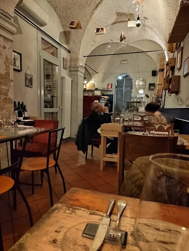 5/10Popular restaurant with potential, but the evening turned out to be very average. The aperitivo mortadella was good, the sardines tasteful, but very simply presented, Decent Lambrusco and franciacorta wines to accompany. The mussel pasta was average and the pappardelle delicious, but again, plain. From online sources it also seems we did not have the regular menu… service was fair, but the waiter seemed stressed. With the good reviews as our initial pointers we expected better.